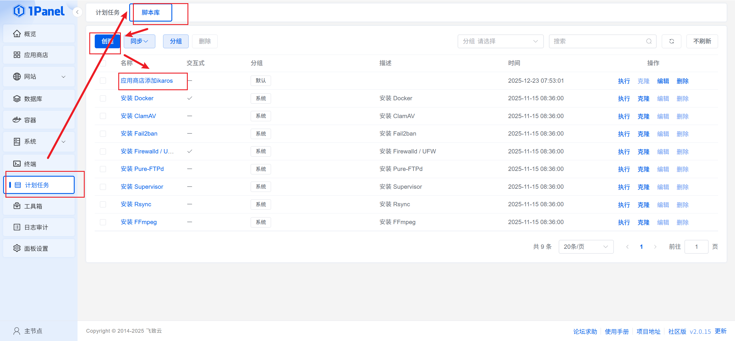 进入1panel面板,按照下图步骤创建计划任务: